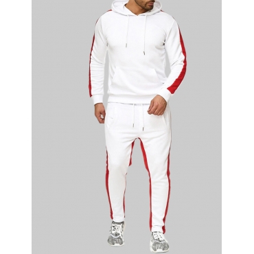 Lovely Sportswear Hooded Collar Color-lump Red Men Two Piece Pants Set