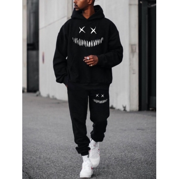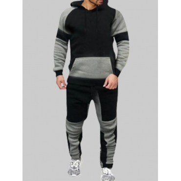 Lovely Sportswear Hooded Collar Color-lump Black Men Two Piece Pants Set