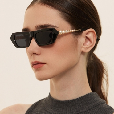 Lovely Casual Pearl Decoration Black Sunglasses