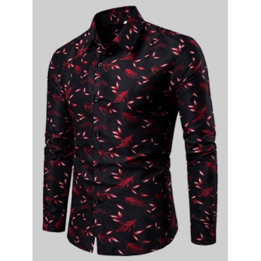 Lovely Formal Floral Print Patchwork Red Men Shirt