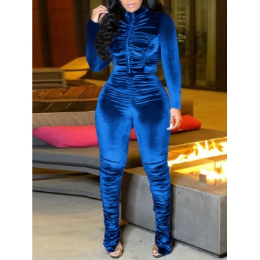 Lovely Stylish Turtleneck Fold Design Blue Two Piece Pants Set