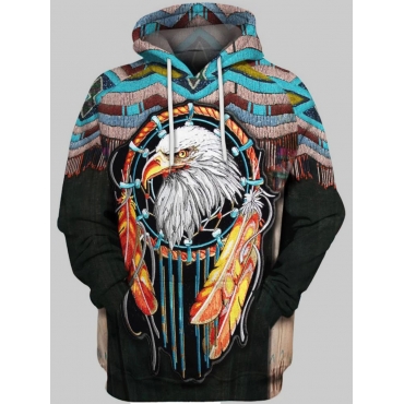 Lovely Casual Eagle Print Patchwork Multicolor Men Hoodie