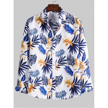 Lovely Trendy Floral Print Patchwork White Men Shirt