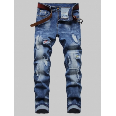 Lovely Casual Broken Holes Tie-dye Blue Men Jeans