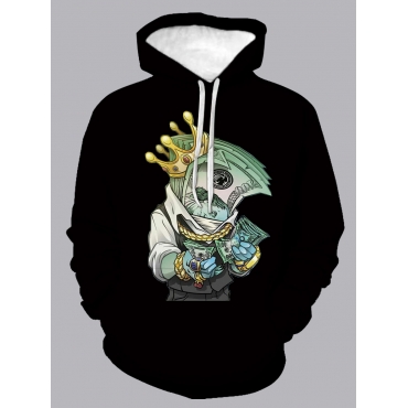 Lovely Street Hooded Collar Print Black Men Hoodie