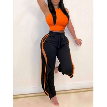 Lovely Sportswear O Neck Side Split Jacinth Two Piece Pants Set