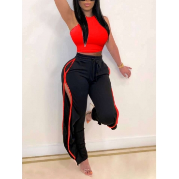 Lovely Sportswear O Neck Side Split Red Two Piece Pants Set