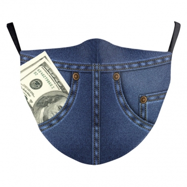 Lovely Trendy Money Pocket Print Dark Blue Face Mask