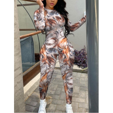 Lovely Casual O Neck Letter Print Patchwork Grey One-piece Jumpsuit