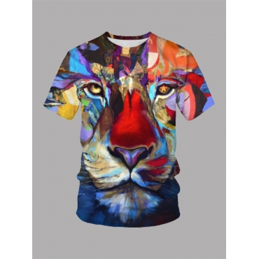 Lovely Casual Tiger Print Patchwork Multicolor Men T-shirt