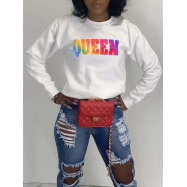 Lovely Casual O Neck Tie-dye Letter Print White Hoodie