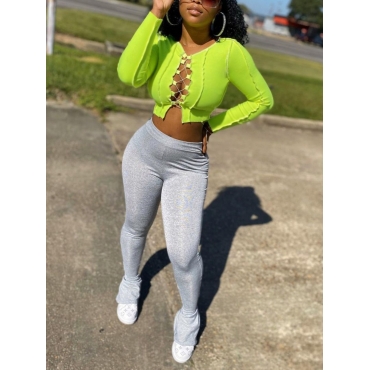 Lovely Casual Bandage Design Skinny Green Two Piece Pants Set