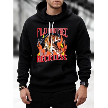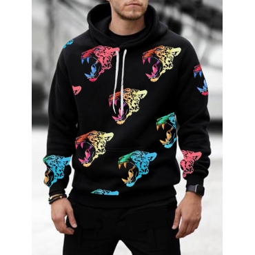 Lovely Casual Hooded Collar Drawstring Print Black Men Hoodie