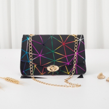 Lovely Stylish Geometric Decoration Chain Strap Black Crossbody Bag