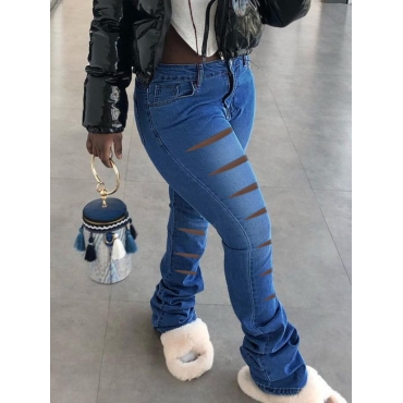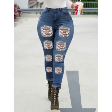 Lovely Street High-waisted Broken Holes Blue Jeans