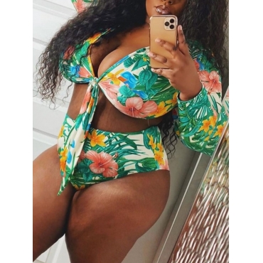 Lovely Bohemian Print Green Plus Size Tankini