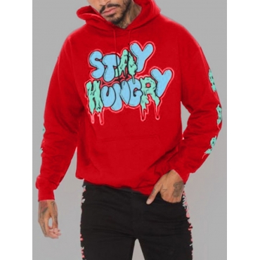 Lovely Casual Hooded Collar Letter Print Red Men Hoodie
