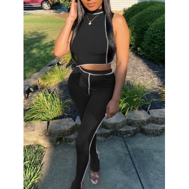 Lovely Trendy Half A Turtleneck Striped Asymmetrical Black Two Piece Pants Set