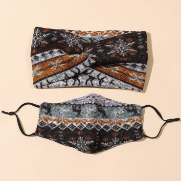 Lovely Trendy Geometric Print Brown Face Mask(With Head Band)