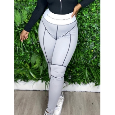 Lovely Sportswear Mid Waist Patchwork Grey Leggings