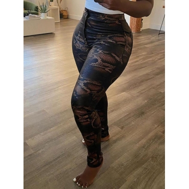 Lovely Street Mid Waist Cobra Print Patchwork Pants