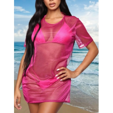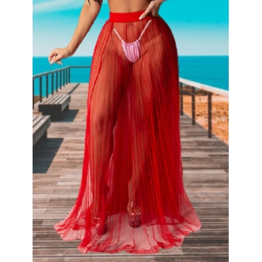 Lovely Casual Pleated See-through Red Cover-up