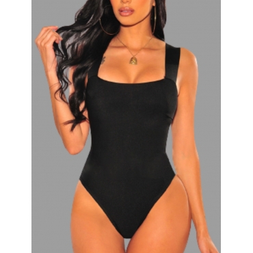 Lovely Casual Wide Strap Basic Skinny Black One-piece Swimsuit