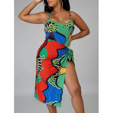 Lovely Chic Print Bandage Hollow-out Design Green One-piece Swimsuit(Without Scarf)