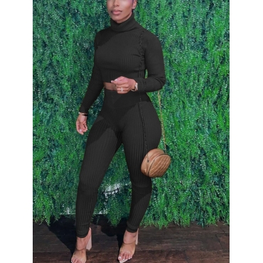 Lovely Casual Turtleneck Long Sleeve Black Two Piece Pants Set