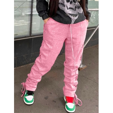 Lovely Casual Bandage Design Drawstring Pink Pants