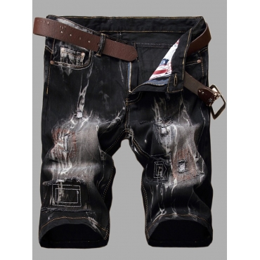 Lovely Trendy Tie-dye Broken Holes Black Men Denim Shorts
