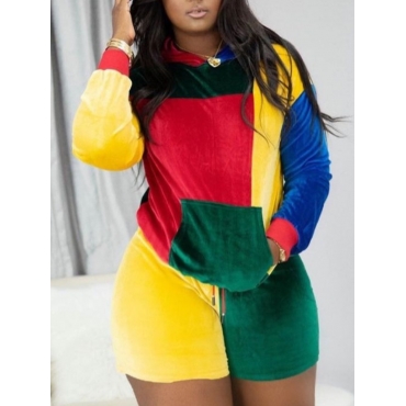 Lovely Casual Dropped Shoulder Color-lump Stitching Multicolor Two Piece Shorts Set