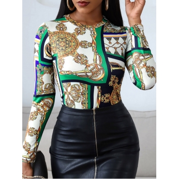 Lovely Sweet O Neck Geometric Print Patchwork Multicolor T-shirt