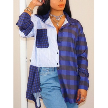 Lovely Street Plaid Print Split Black Blouse