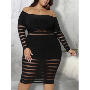 Lovely Trendy Off The Shoulder Mesh Patchwork Black Knee Length Plus Size Dress