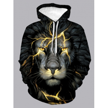 Lovely Casual Hooded Collar Lion Print Patchwork Black Men Hoodie
