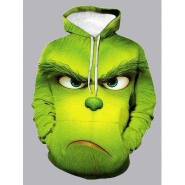 Lovely Stylish Animal Face Print Kangaroo Pocket Green Men Hoodie