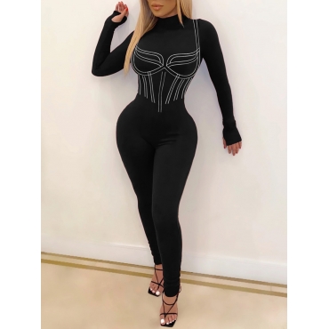 Lovely Casual Turtleneck Striped Black One-piece Jumpsuit