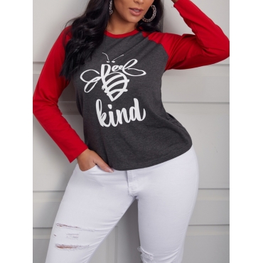 Lovely Casual O Neck Letter Print Red T-shirt