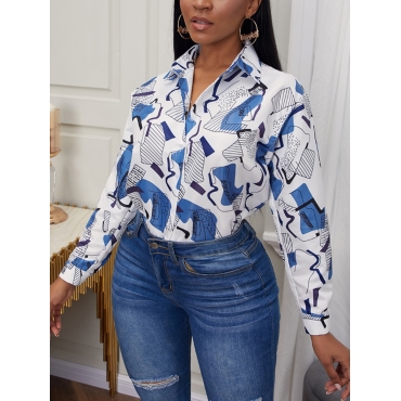 Lovely Formal Geometric Print Patchwork Blue Blouse