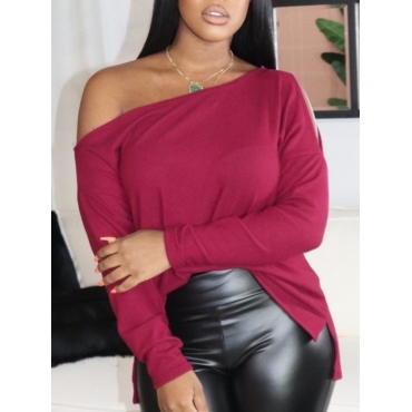 Lovely Trendy Bateau Neck Hollow-out Red T-shirt