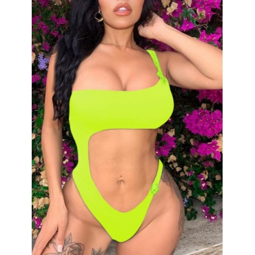 Lovely Trendy One Shoulder Hollow-out Yellow One-piece Swimsuit