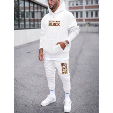 Lovely Sportswear Letter Print Kangaroo Pocket White Men Two Piece Pants Set