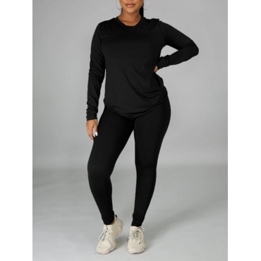 Lovely Casual O Neck Black Two Piece Pants Set
