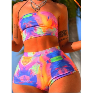 Lovely Chic High-waisted Tie-dye Multicolor Tankini