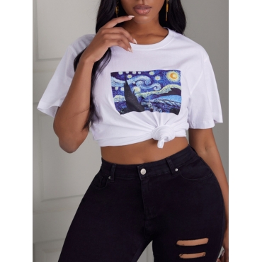 Lovely Casual O Neck Print White T-shirt