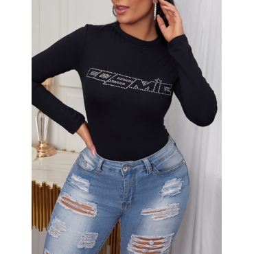 Lovely Casual O Neck Letter Print Black T-shirt