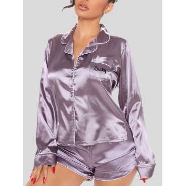 Lovely Casual Turndown Collar Print Purple Sleepwear