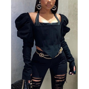 Lovely Street Hubble-bubble Sleeve Asymmetrical Black Blouses