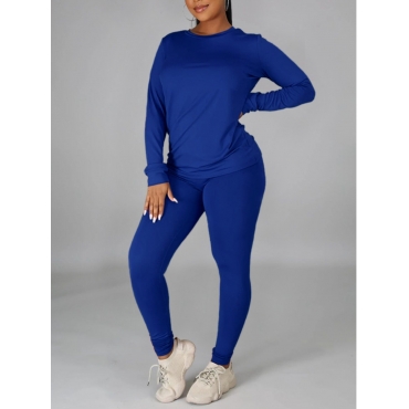 Lovely Casual O Neck Blue Two Piece Pants Set